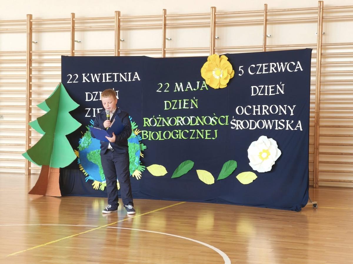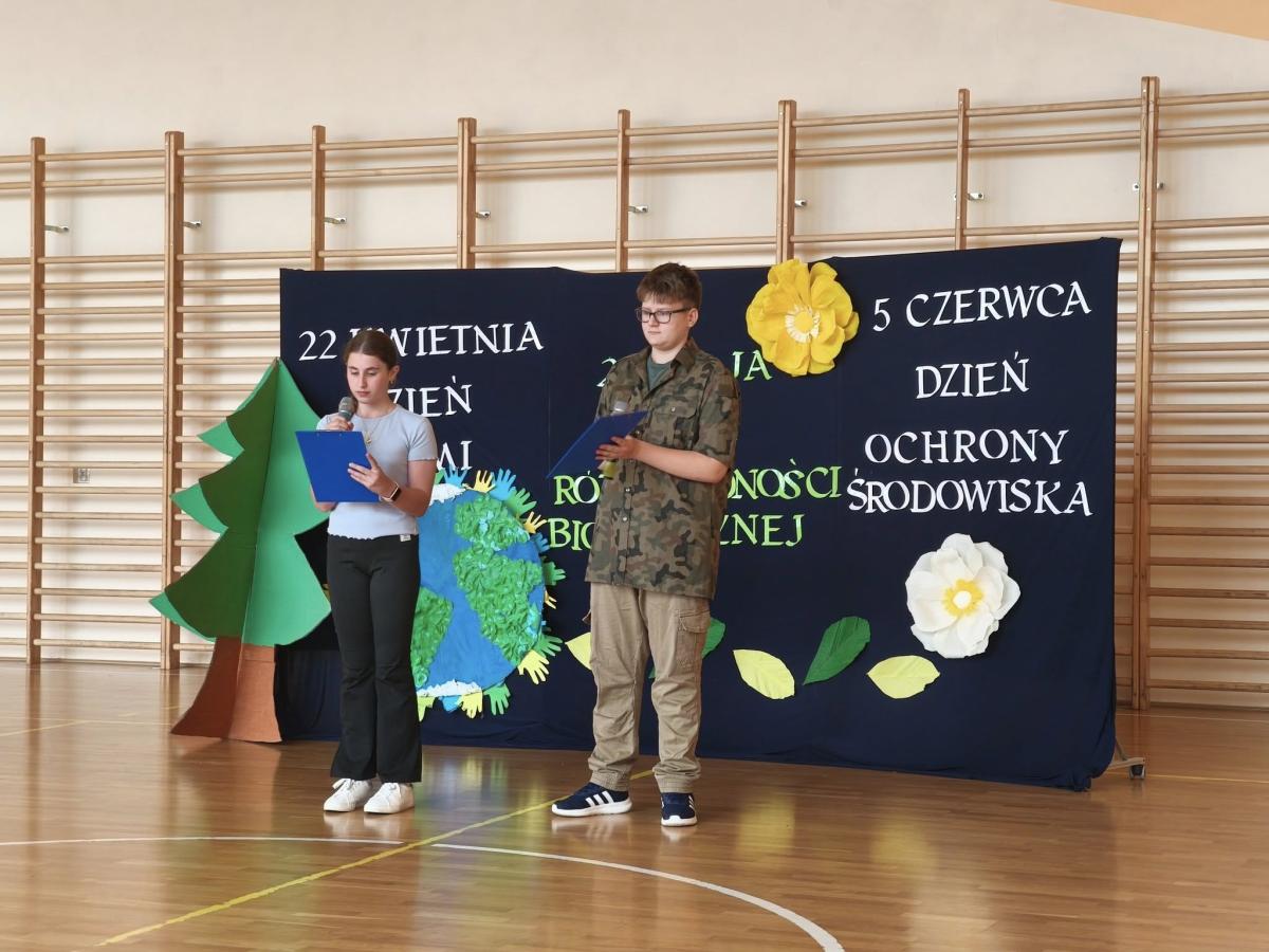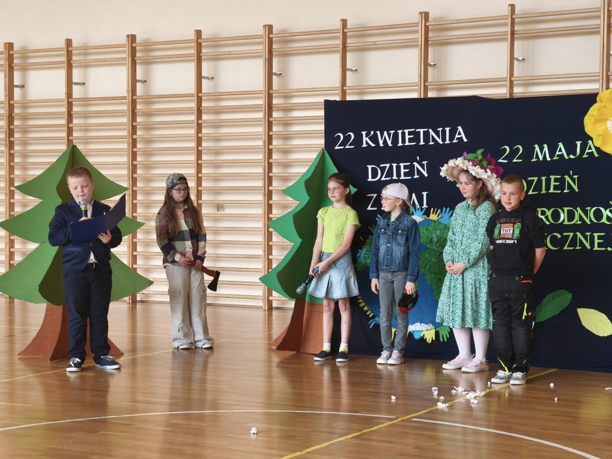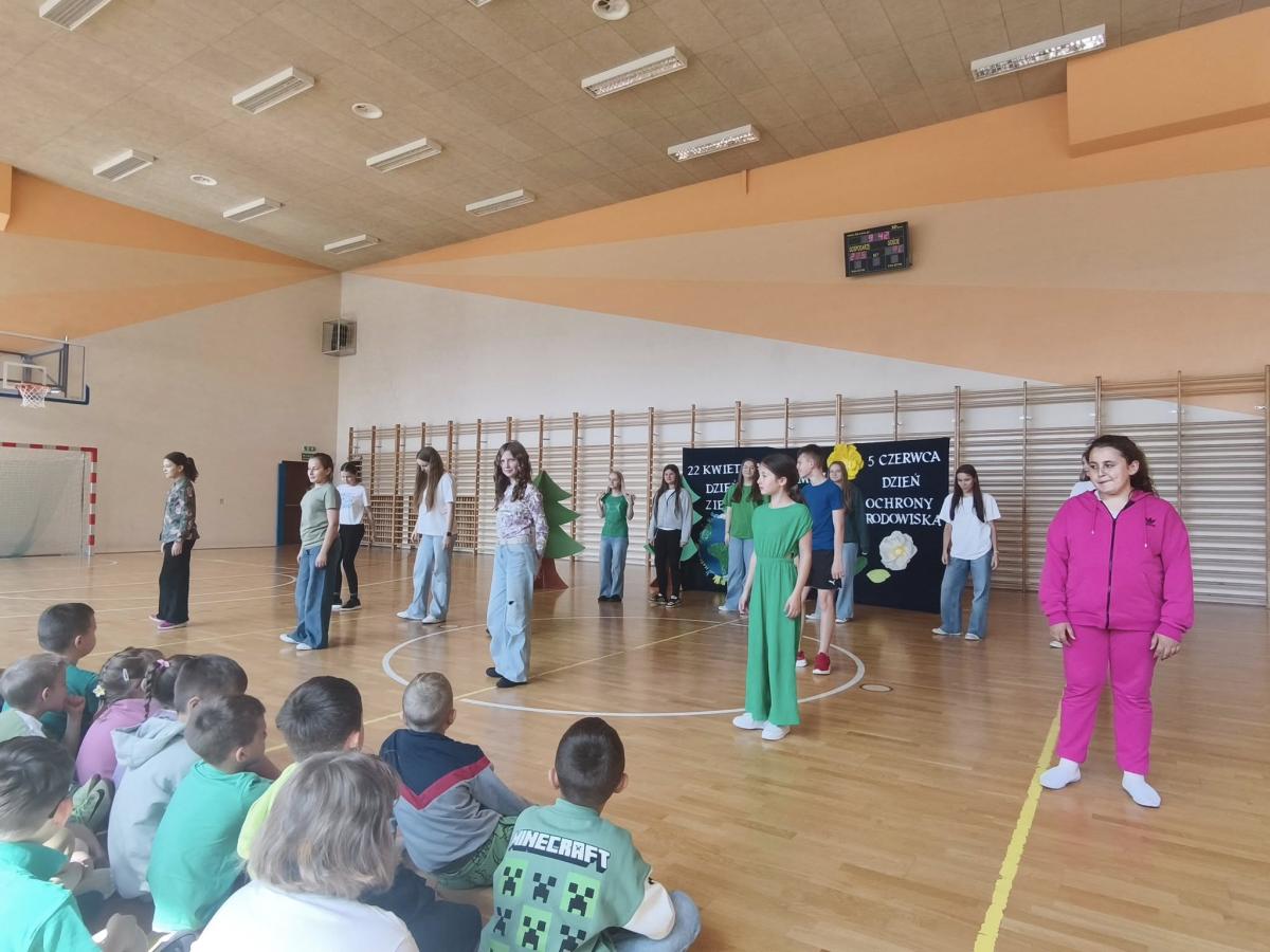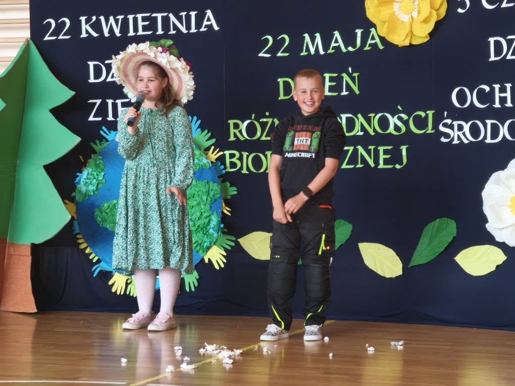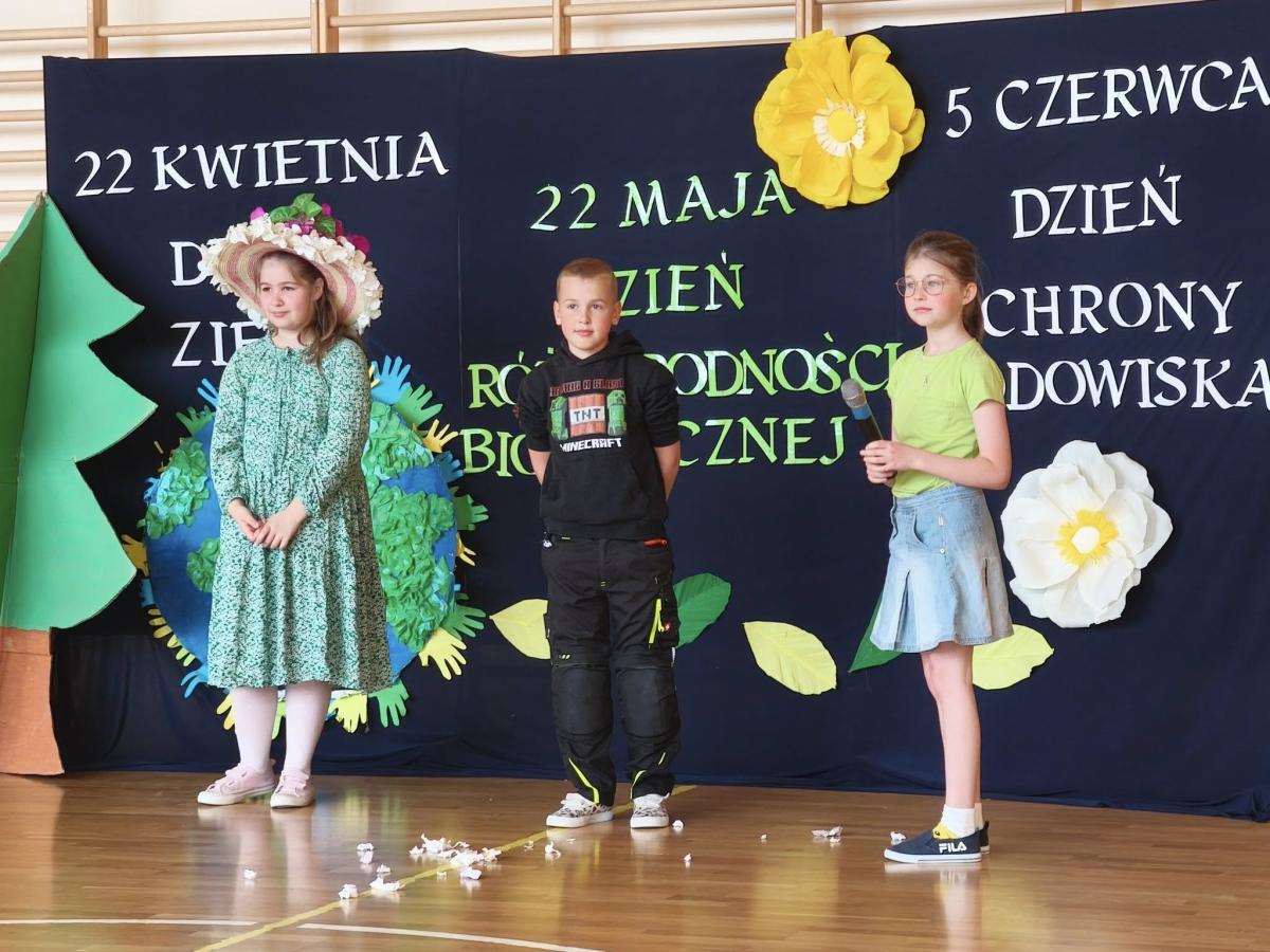 Obchody rozpoczęliśmy od krótkiego przedstawienia ekologicznego, przygotowanego przez naszych uczniów. Młodzi aktorzy z humorem i zaangażowaniem przypomnieli, jak ważna jest ochrona przyrody, segregowanie odpadów i odpowiedzialne korzystanie z zasobów Ziemi.
