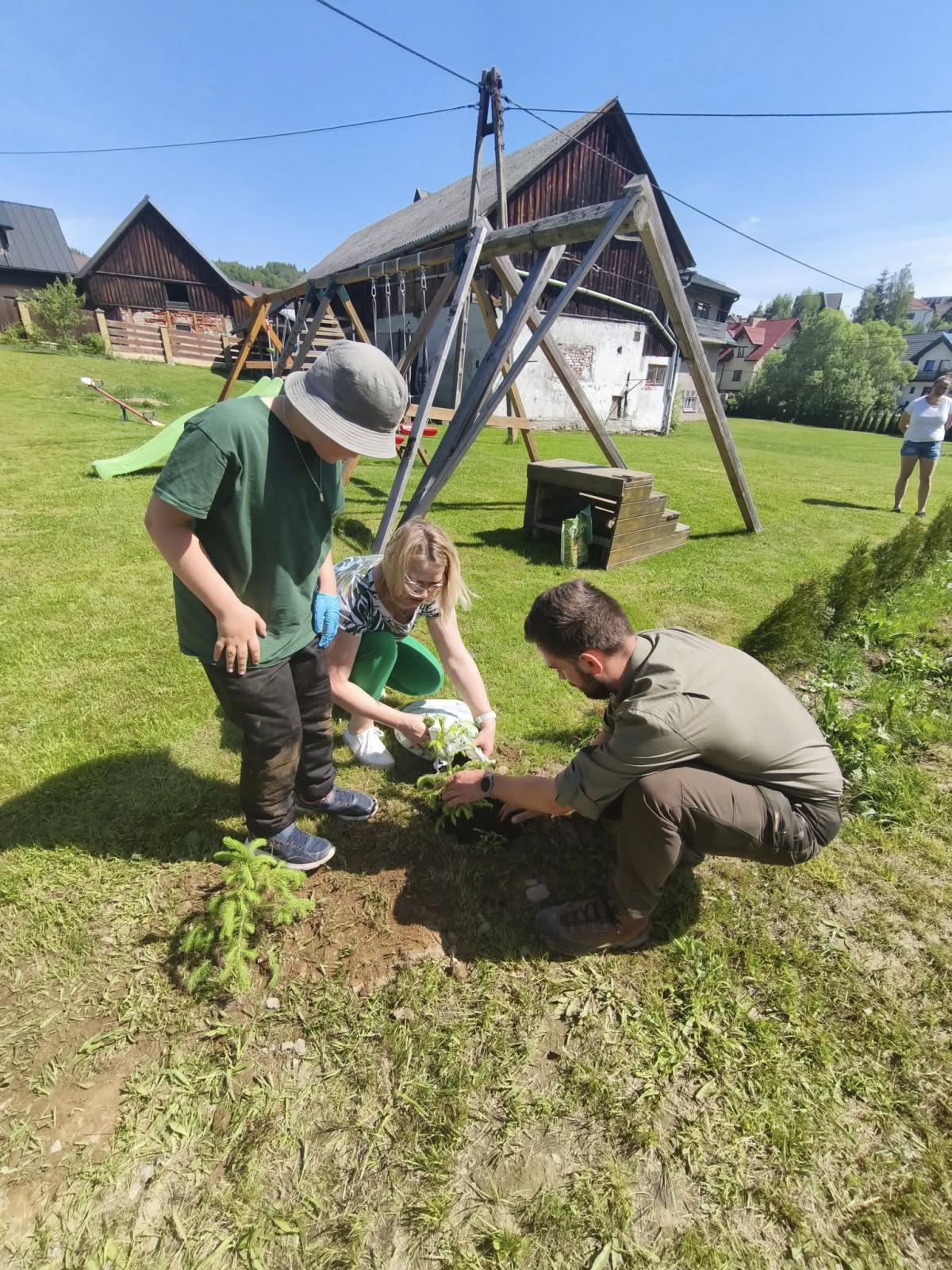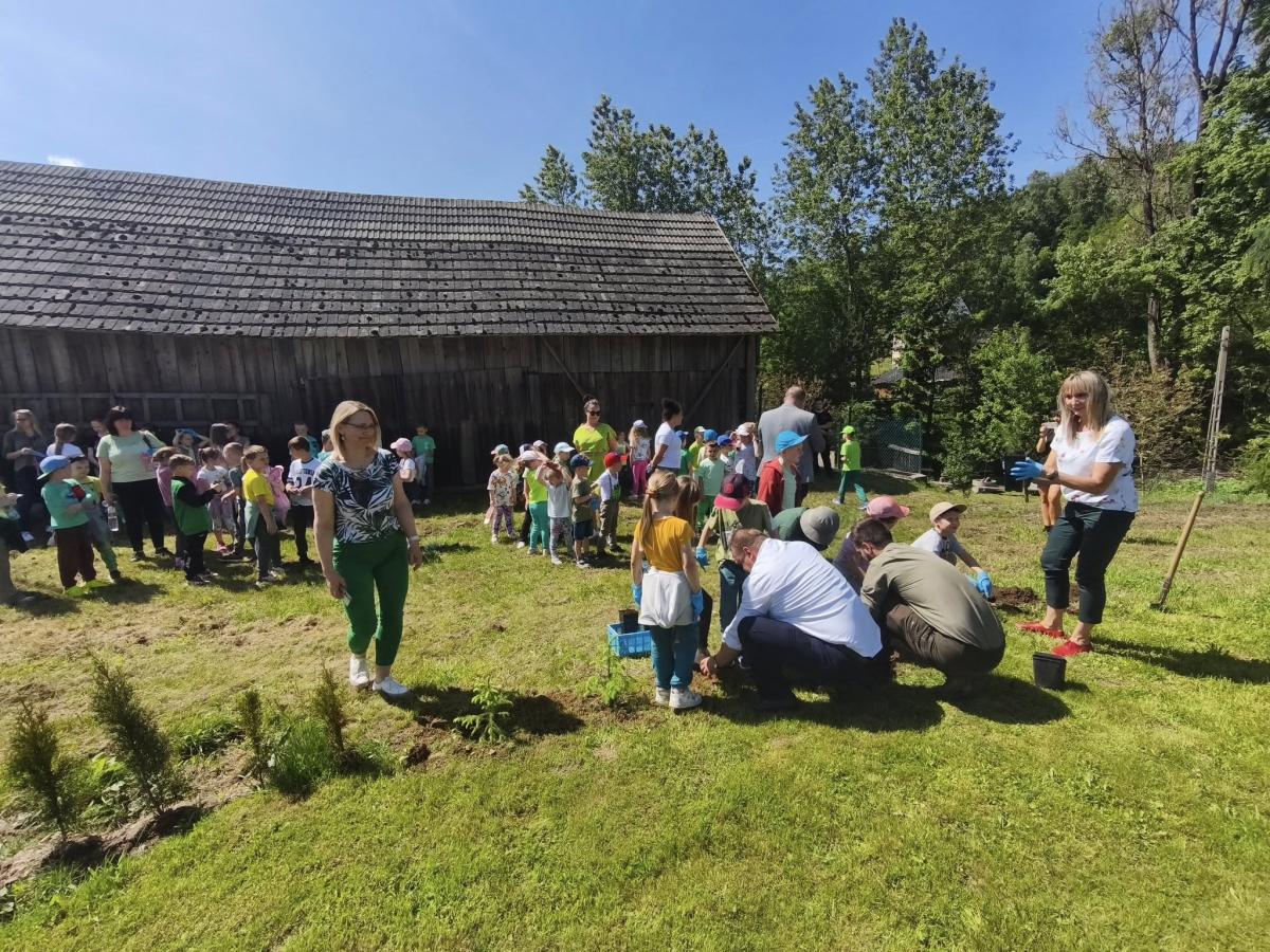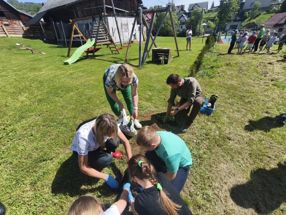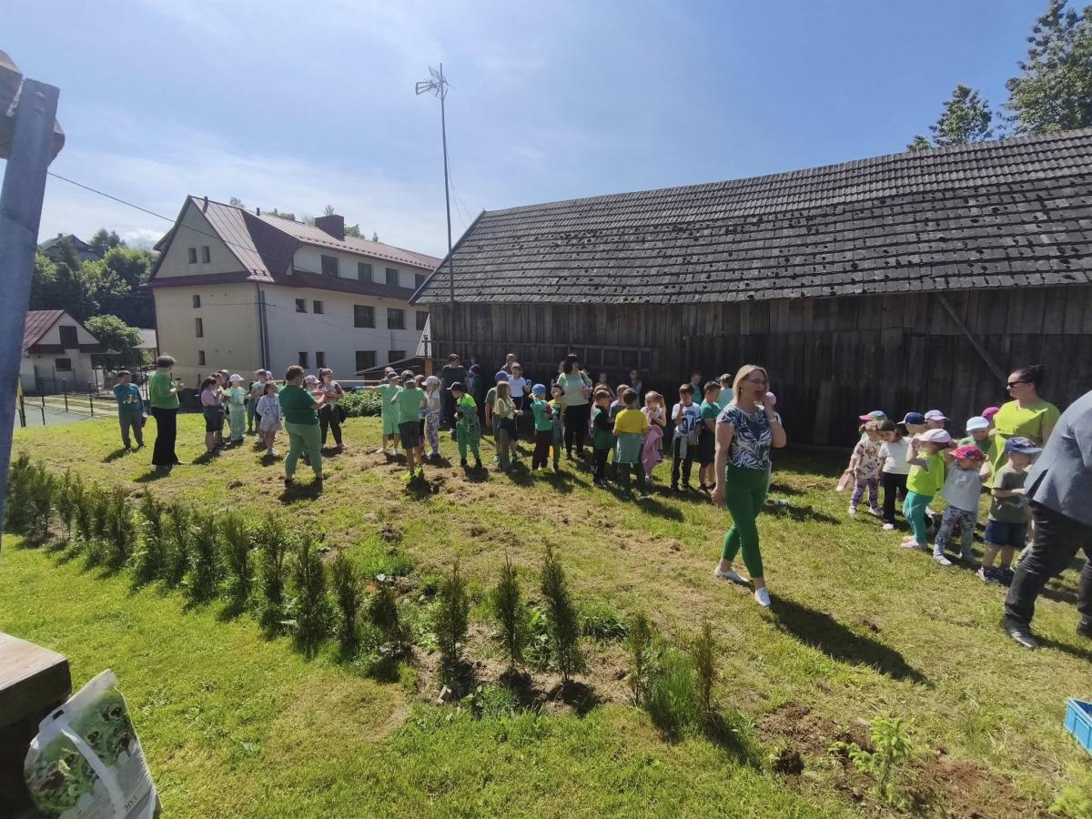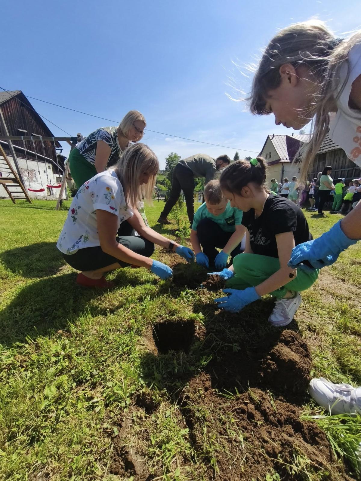Po części artystycznej wszyscy wspólnie zatańczyliśmy energiczny taniec integracyjny, który wprowadził uczestników w radosny nastrój. Następnie przyszedł czas na działanie z myślą o przyszłości – wspólnie zasadziliśmy drzewa, które będą przypominały nam o tym dniu przez długie lata i staną się symbolem naszej troski o naturę.
