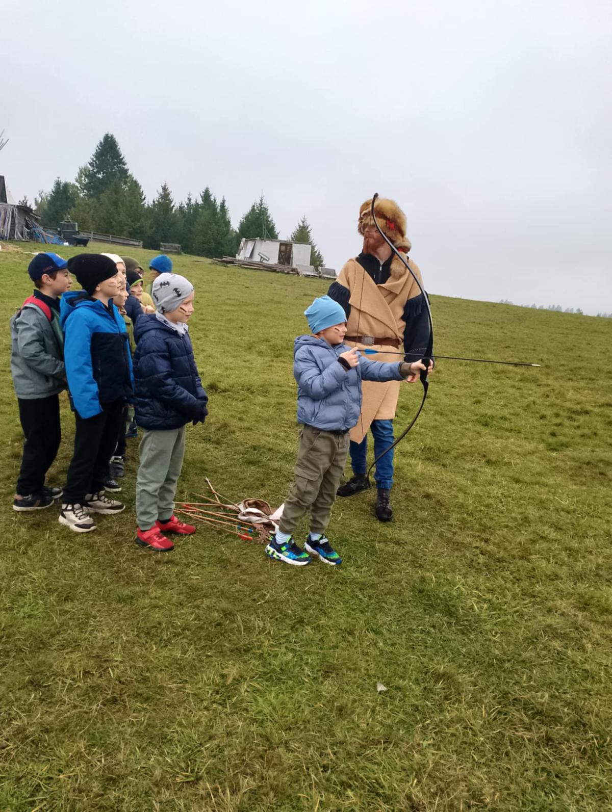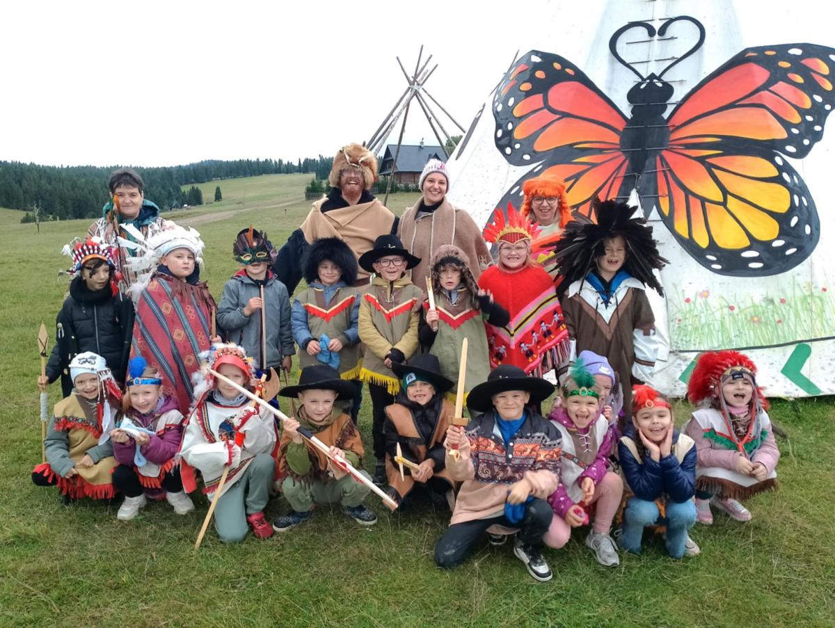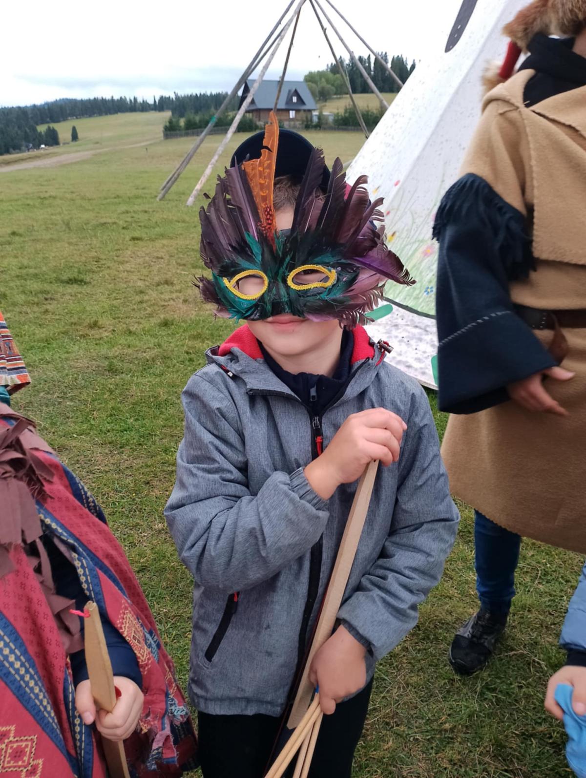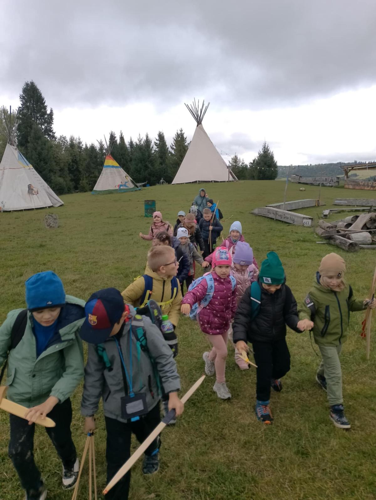 Dzieci brały udział w różnych zabawach i warsztatach – uczyły się gry na instrumentach, strzelały z łuku oraz miały możliwość przebrania się w stroje, które kiedyś nosili Indianie. Na koniec zjedliśmy wspólny posiłek przy ognisku .