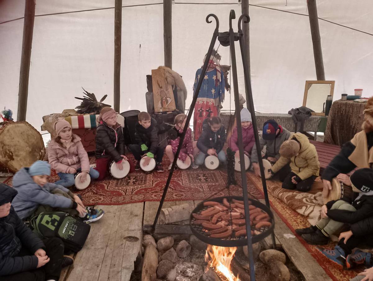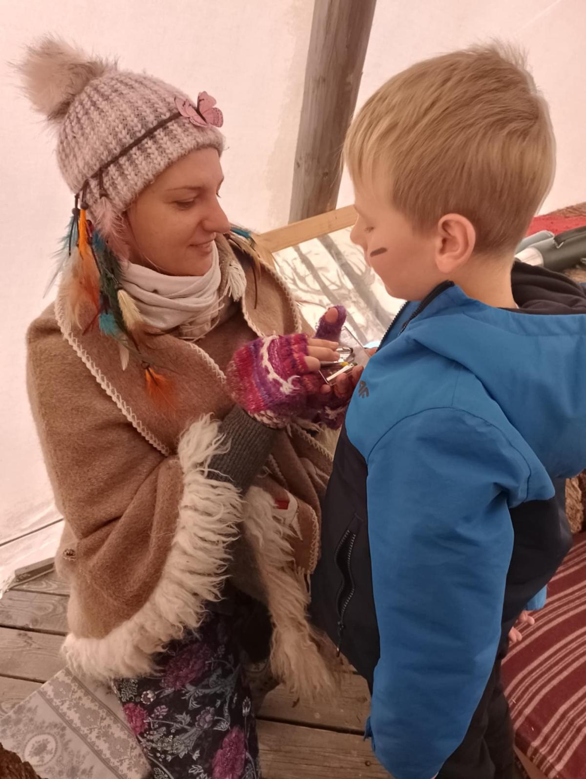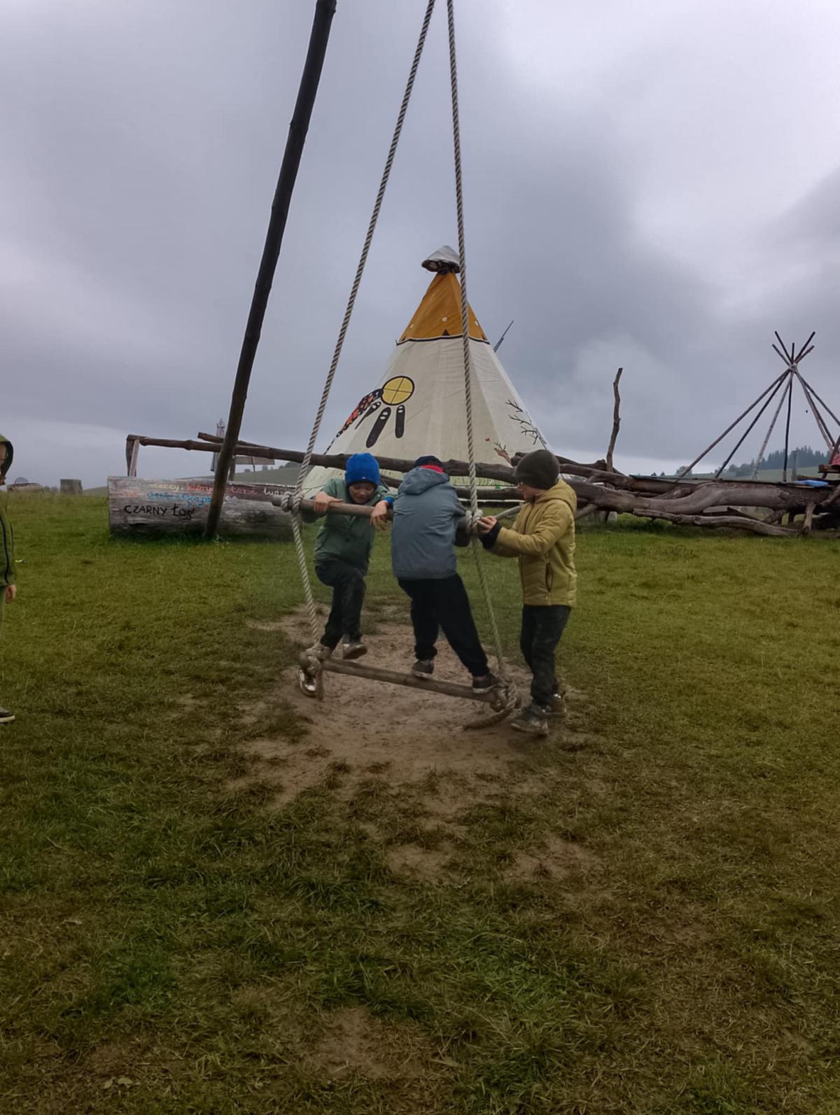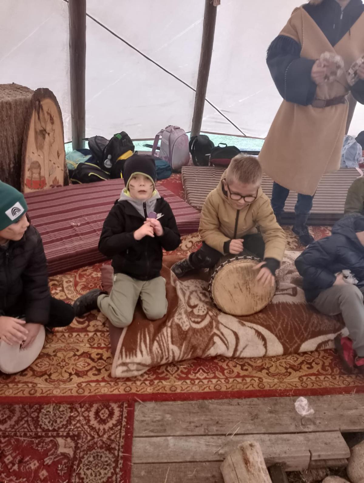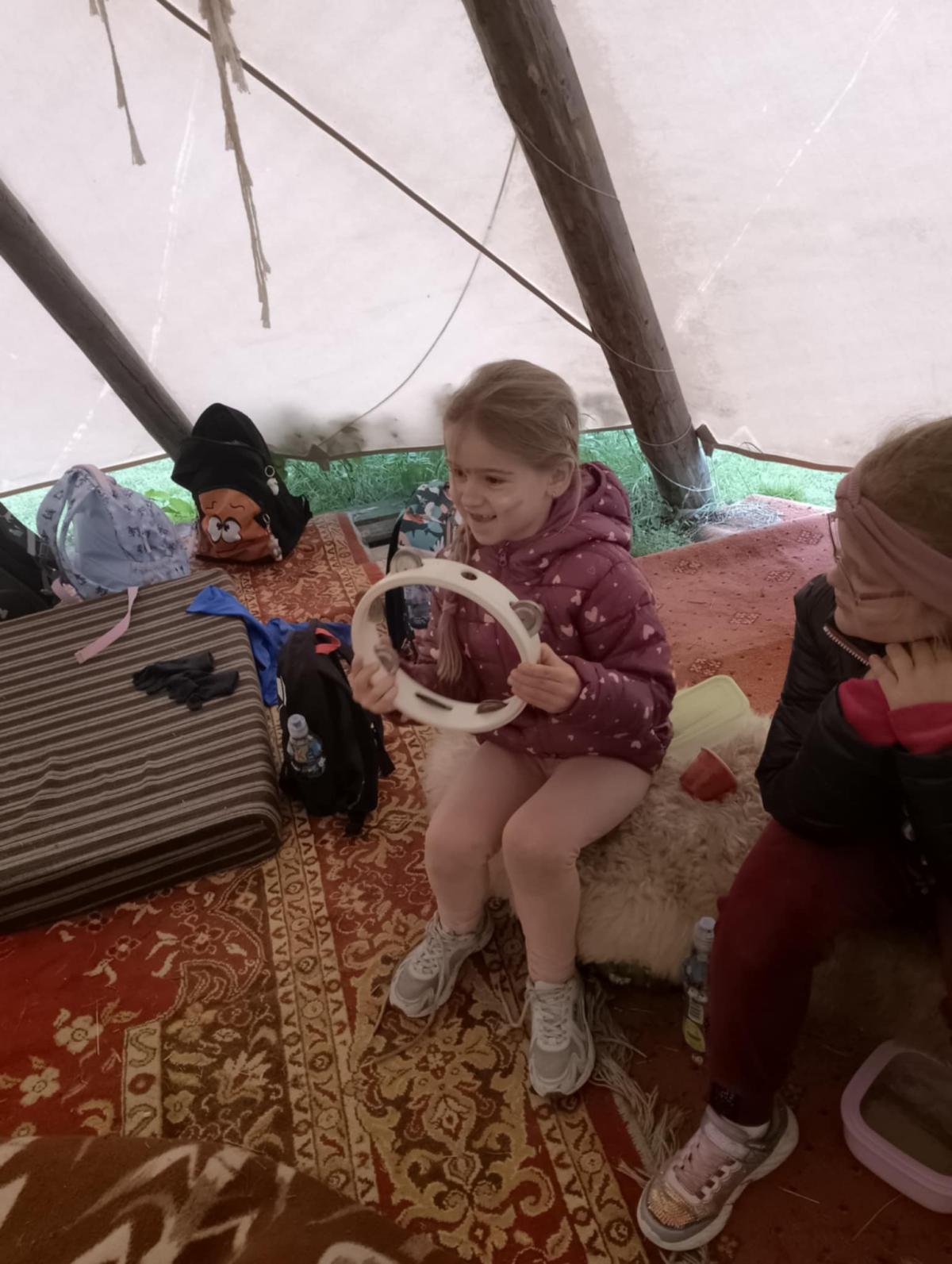 Dzieci brały udział w różnych zabawach i warsztatach – uczyły się gry na instrumentach, strzelały z łuku oraz miały możliwość przebrania się w stroje, które kiedyś nosili Indianie. Na koniec zjedliśmy wspólny posiłek przy ognisku .