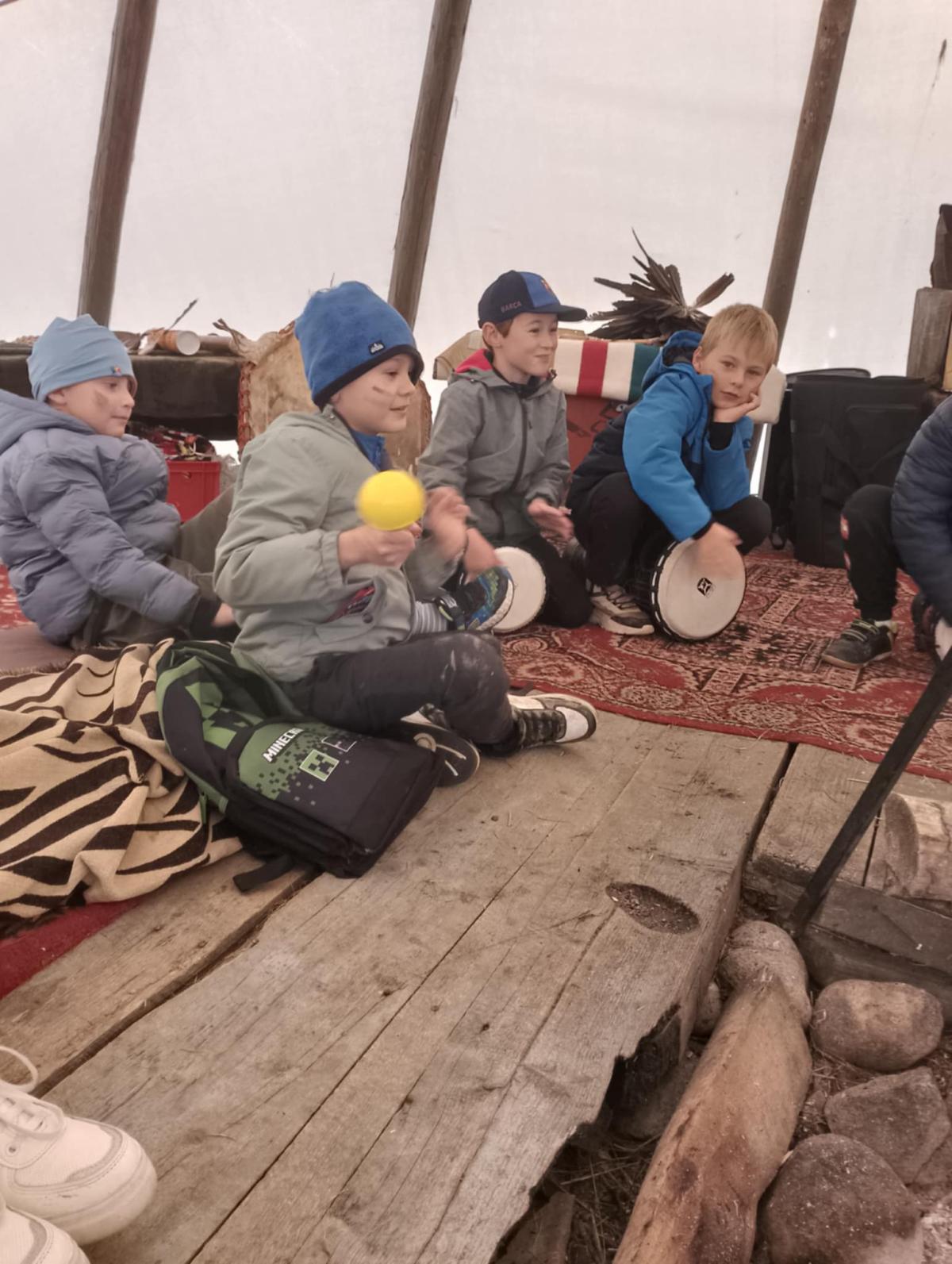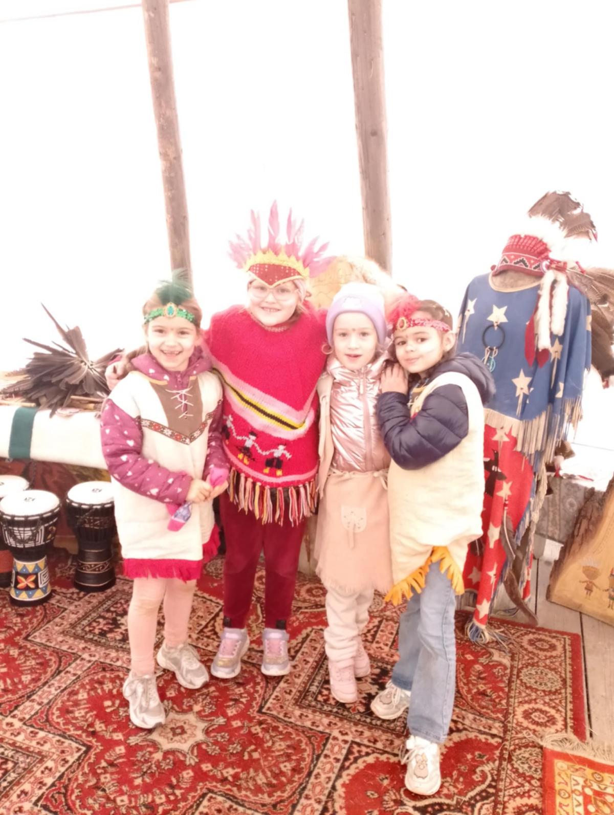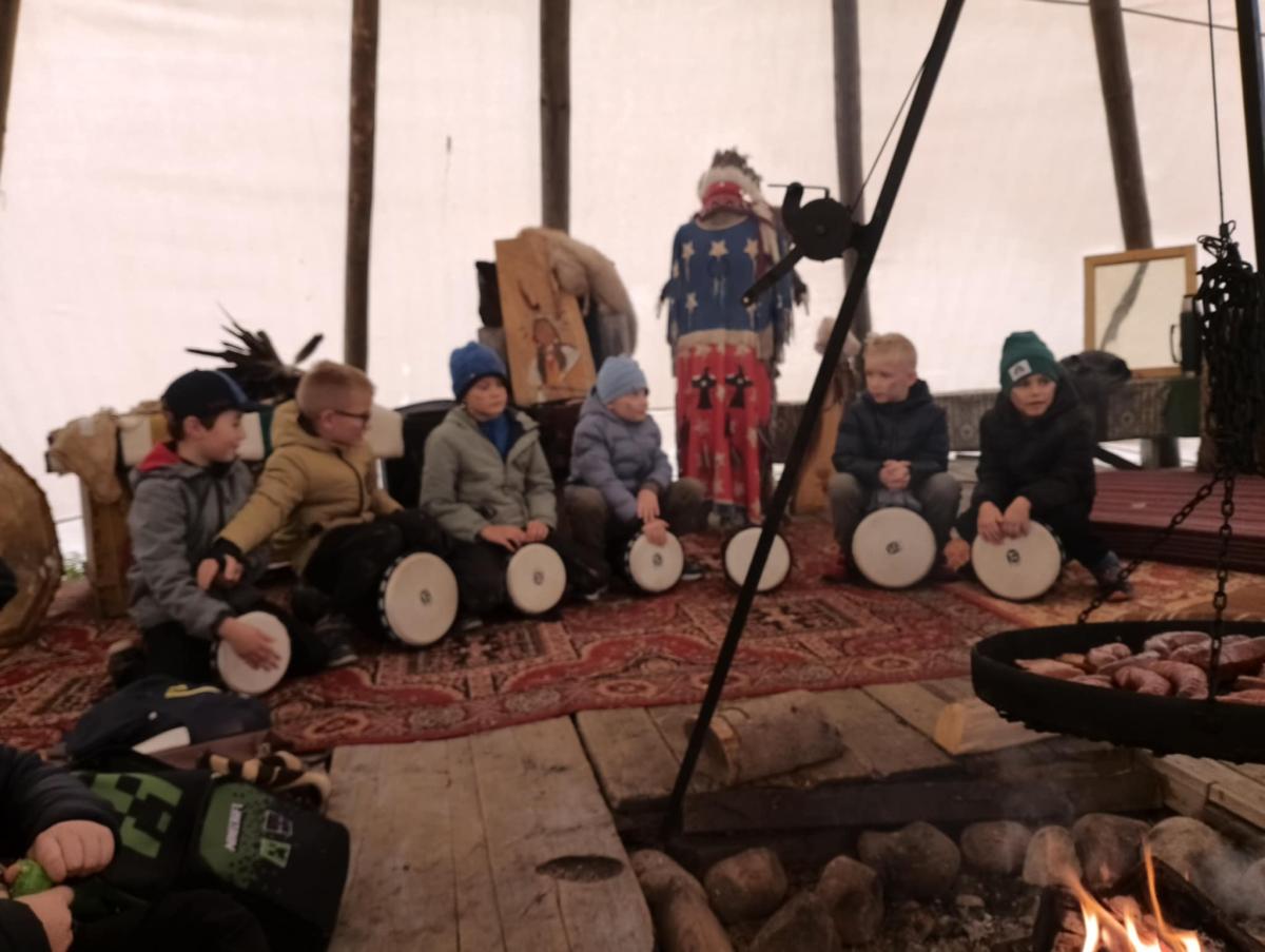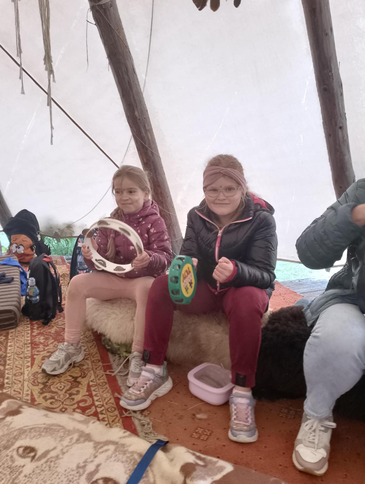 Na miejscu zobaczyliśmy prawdziwe tipi, czyli indiańskie namioty, w których kiedyś mieszkano. Mieliśmy też okazję posłuchać ciekawych opowieści o codziennym życiu Indian, ich strojach, jedzeniu oraz tradycjach.