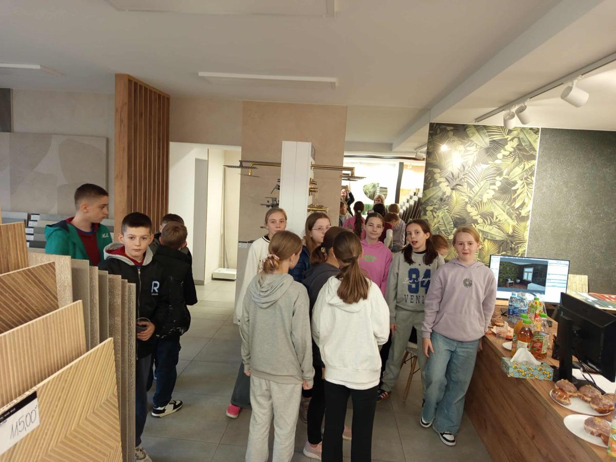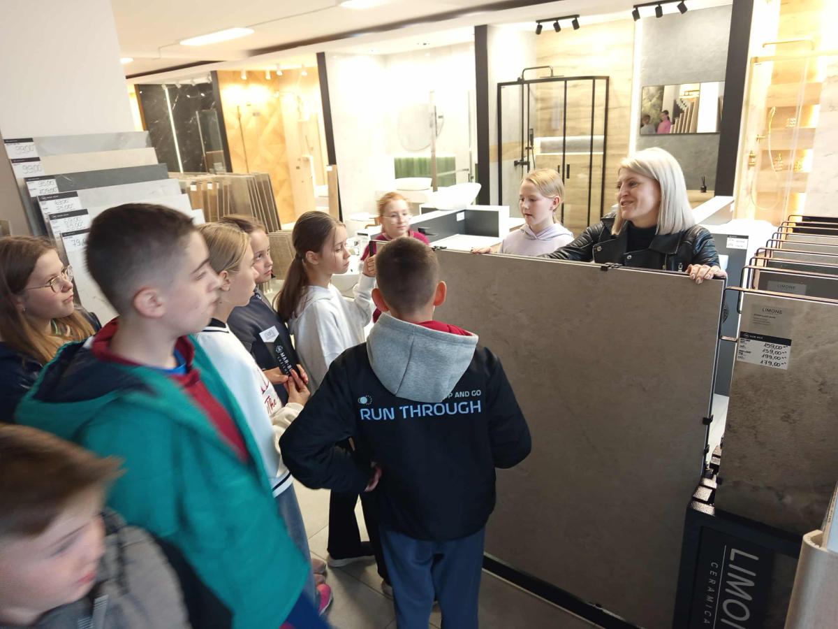 W ramach zajęć z doradztwa zawodowego uczniowie klasy V udali się do pobliskiego salonu łazienek. Podczas wizyty dowiedzieli się, na czym polega praca sprzedawcy, jak wygląda obsługa klientów oraz jakie umiejętności są potrzebne w tym zawodzie.