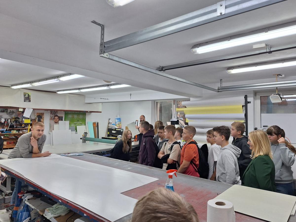 W ramach zajęć z doradztwa zawodowego uczniowie klasy 7 odwiedzili miejscową drukarnię CREATIV. Podczas wizyty mieli okazję z bliska zobaczyć, jak wygląda praca w zakładzie drukarskim i jak powstają różne materiały reklamowe.