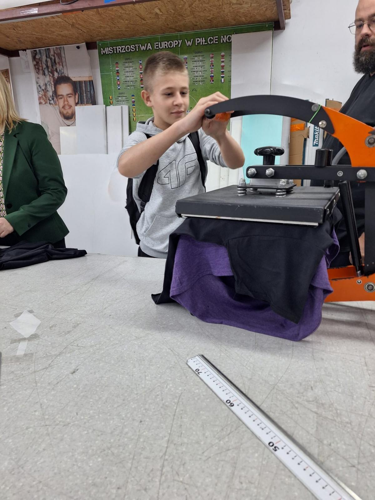 Największą atrakcją okazało się własnoręczne przygotowanie spersonalizowanej koszulki, co pozwoliło uczniom w praktyce poznać tajniki nowoczesnych technik druku. 👕