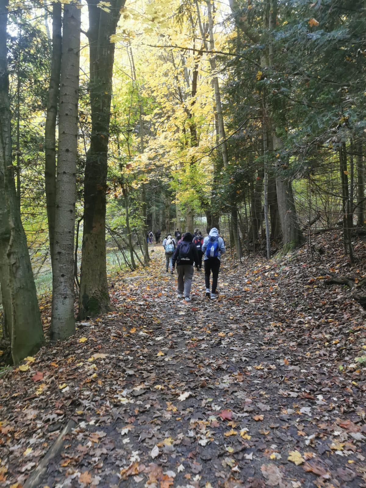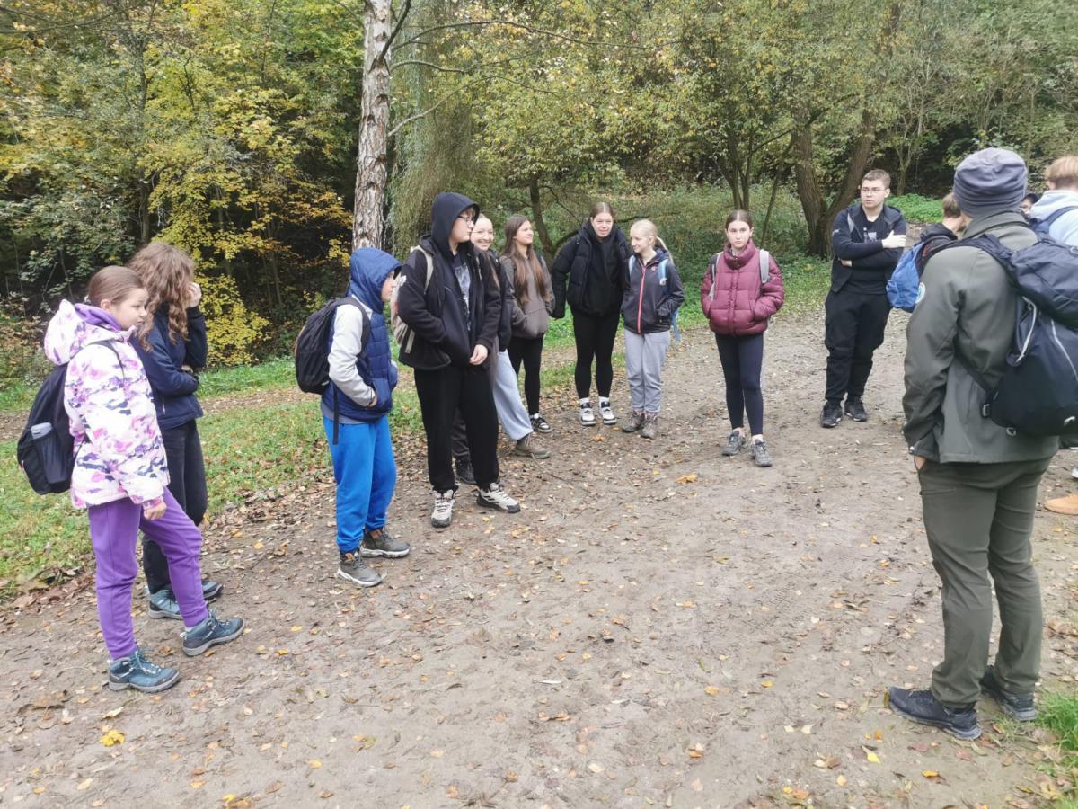 Podczas wędrówki ósmoklasiści poznawali przyrodę regionu, obserwowali jesienne zmiany w krajobrazie i utrwalali wiedzę z zakresu ochrony środowiska.