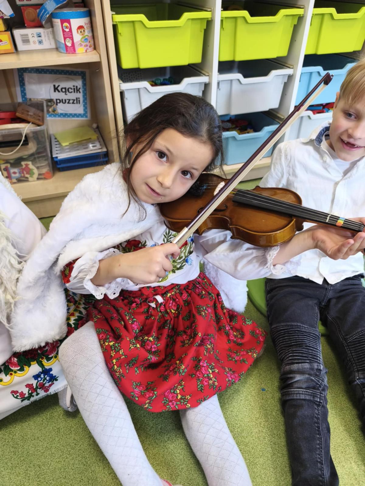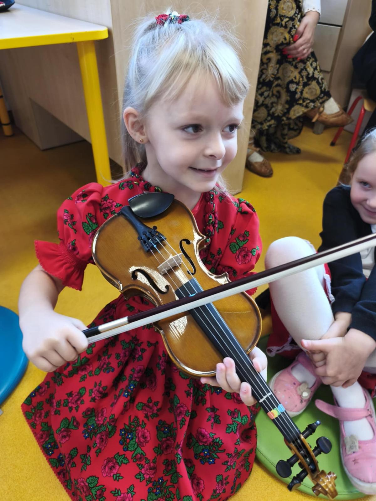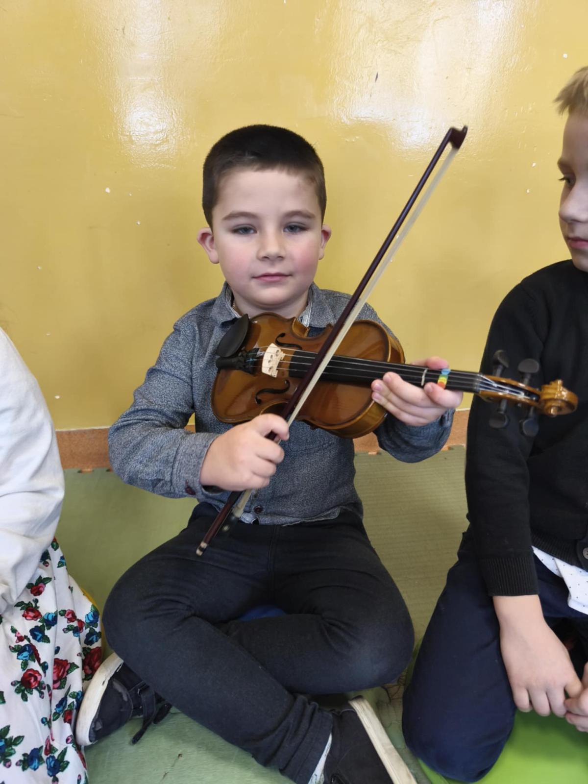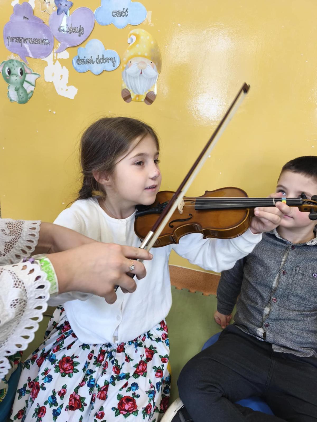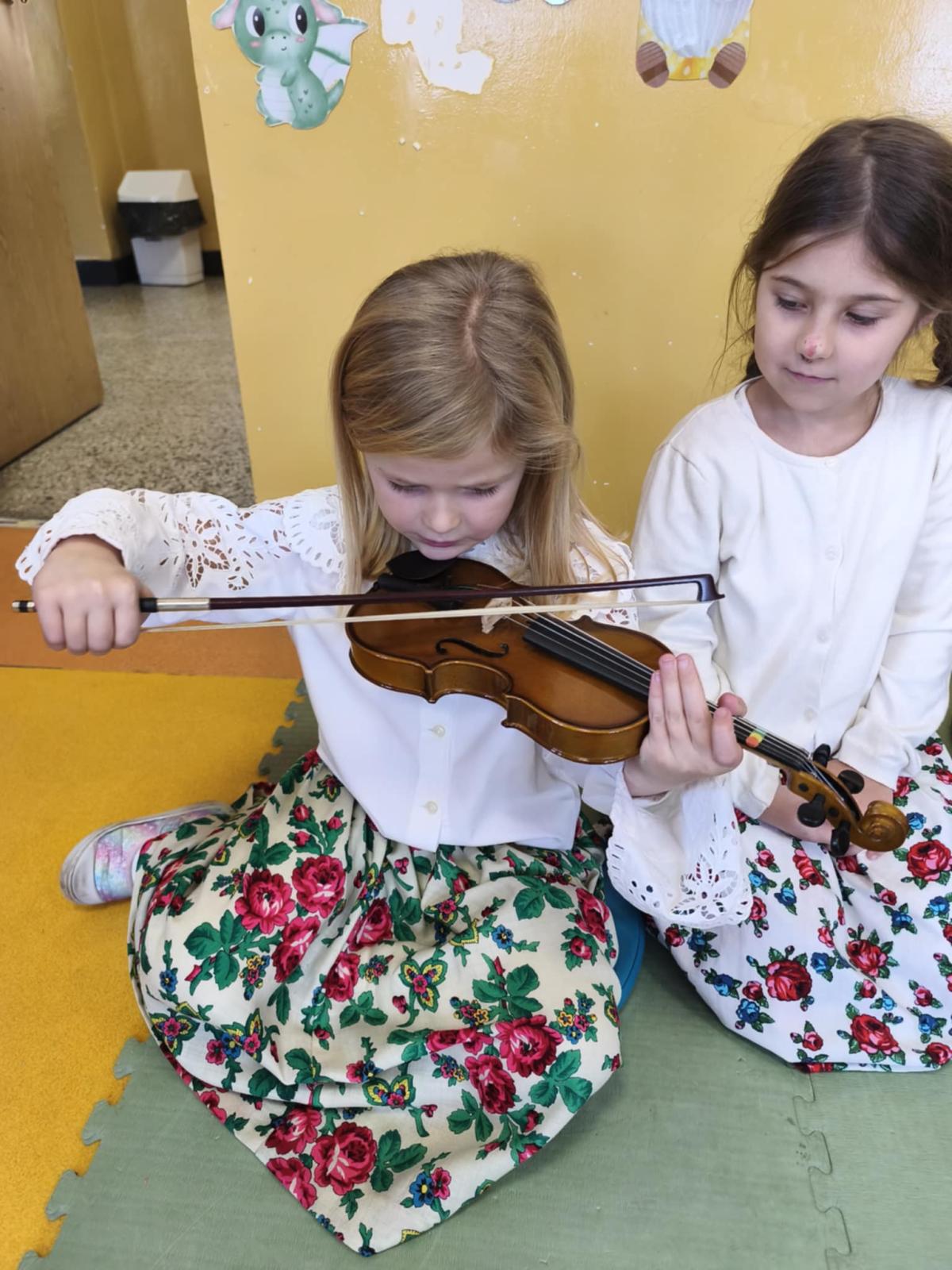 Niezwykle miłym punktem programu był występ Malwiny Koterby i Emilii Wolskiej, które odwiedziły naszych najmłodszych uczniów i opowiadały o swojej nauce gry na skrzypcach. Dziewczyny zaprezentowały także brzmienie tego pięknego instrumentu.