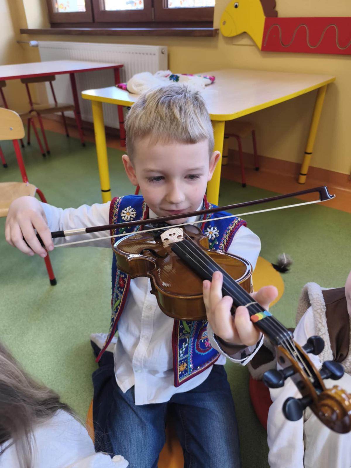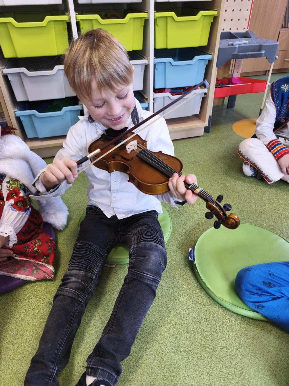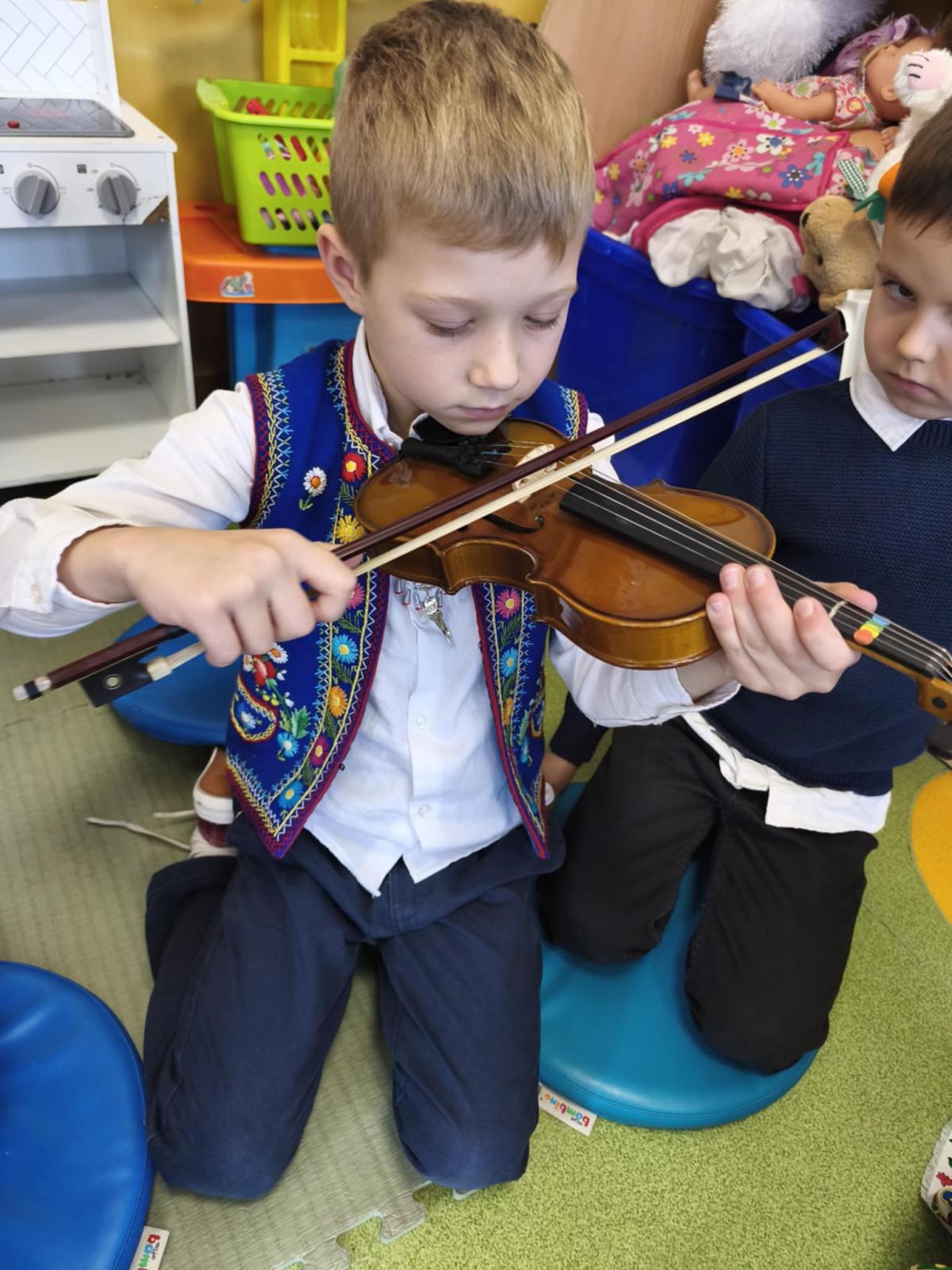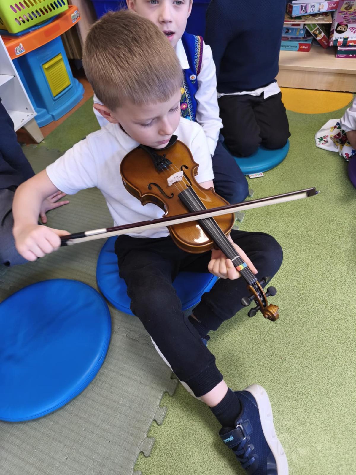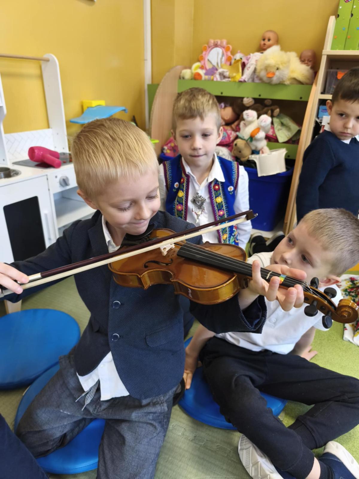 Niezwykle miłym punktem programu był występ Malwiny Koterby i Emilii Wolskiej, które odwiedziły naszych najmłodszych uczniów i opowiadały o swojej nauce gry na skrzypcach. Dziewczyny zaprezentowały także brzmienie tego pięknego instrumentu.