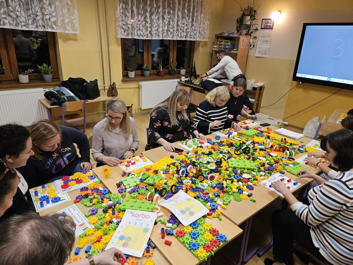 Podczas spotkania uczestnicy poznali różnorodne możliwości wykorzystania klocków Corbo oraz bum bum rurek, w tym także ich łączenia. Zastosowanie tych pomocy dydaktycznych pokazuje, że nauka i utrwalanie wiadomości z języka polskiego, matematyki czy języka angielskiego mogą być atrakcyjne i angażujące.