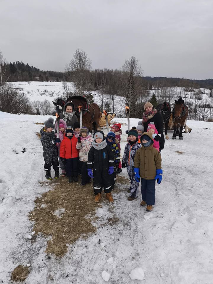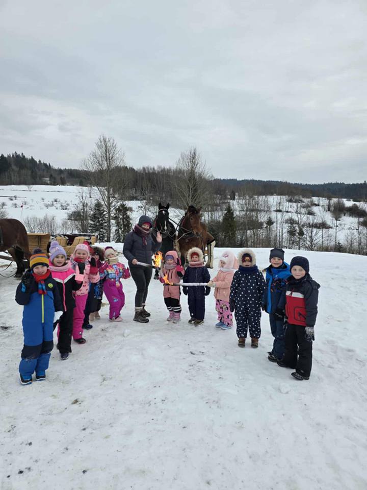 W piękny, zimowy dzień (21 stycznia) dzieci z oddziałów przedszkolnyc wyruszyły na niezwykłą przygodę - kulig! Ubrane w ciepłe kurtki i czapki, z radością oczekiwały na przejażdżkę saniami.