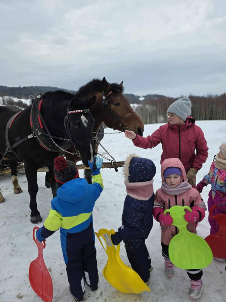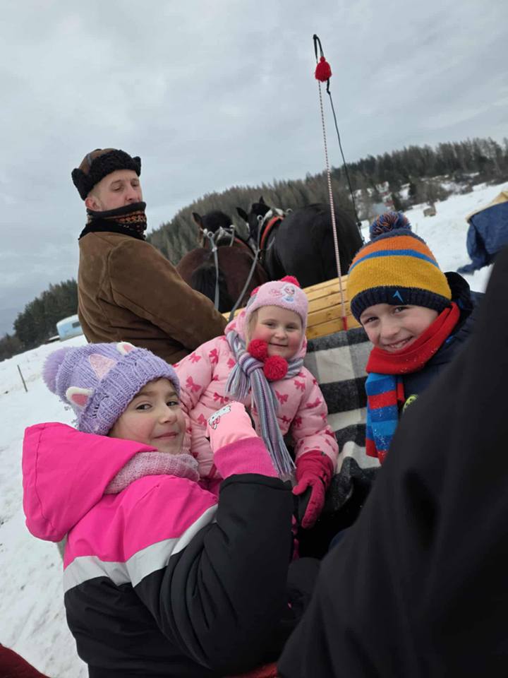 Przez zaśnieżone pola i lasy, dzieci podziwiały zimową scenerię, a wiatr we włosach dodawał im rumieńców. Po emocjonującej przejażdżce nadszedł czas na zabawy na śniegu -bitwa na śnieżki i zjazdy z małej górki dostarczyły mnóstwo frajdy.