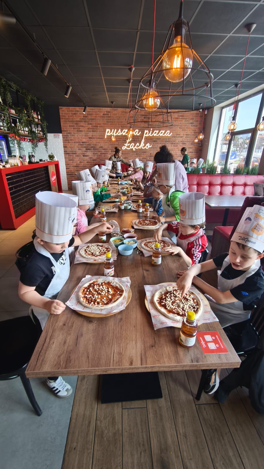W Łąckiej pizzerii Da Grasso wzięły udział w warsztatach „Małego Kucharza”, podczas których poznały zawód pizzermena i samodzielnie przygotowały swoje mini pizze – od formowania ciasta po wybór ulubionych dodatków.